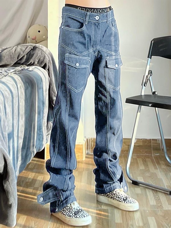 Vaqueros holgados con empalme desgastados vintage para hombre