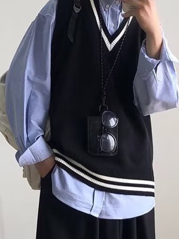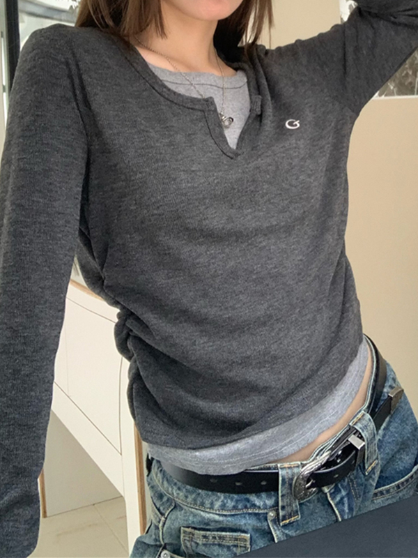 Camiseta falsa de manga larga de dos piezas con contraste de color
