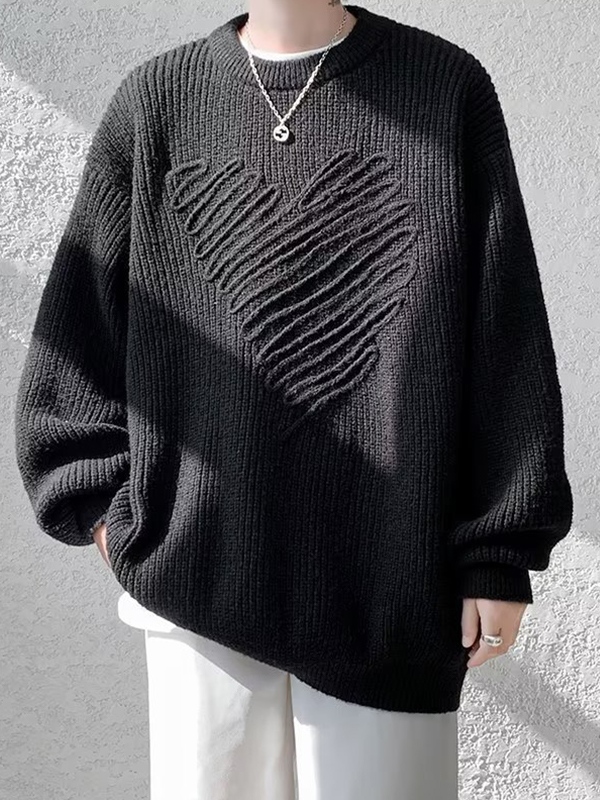 Suéter tridimensional con cuello redondo y decoración de corazones para hombre