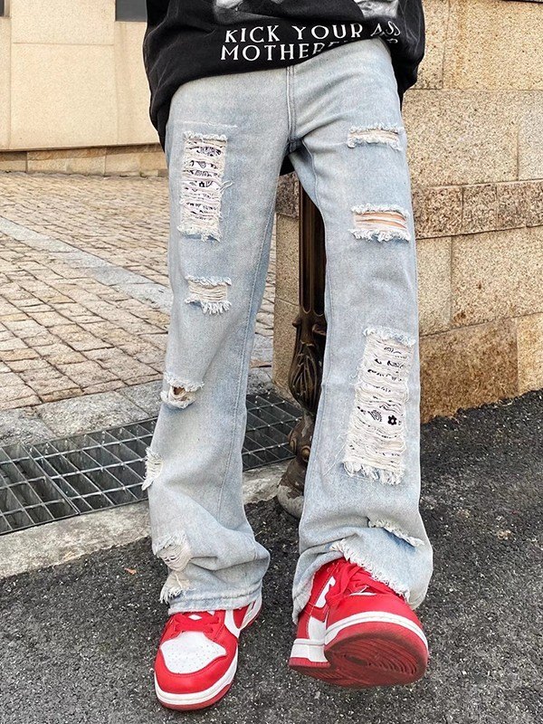 Jeans rasgados acampanados al tobillo para hombre