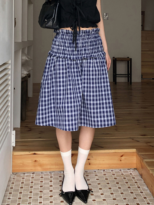 Camisa de manga larga a cuadros midi
