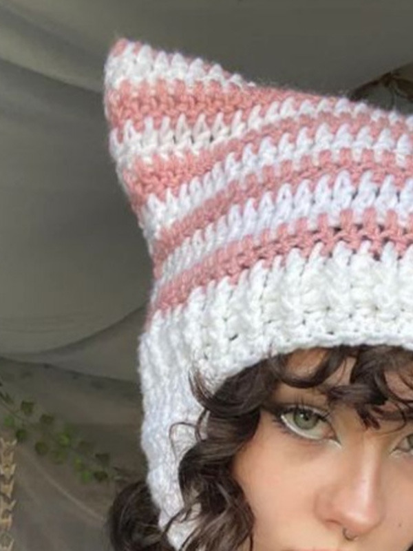 Gorro de punto con rayas de orejas de gato hecho a mano