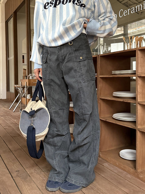 Pantalones cargo plisados con múltiples bolsillos