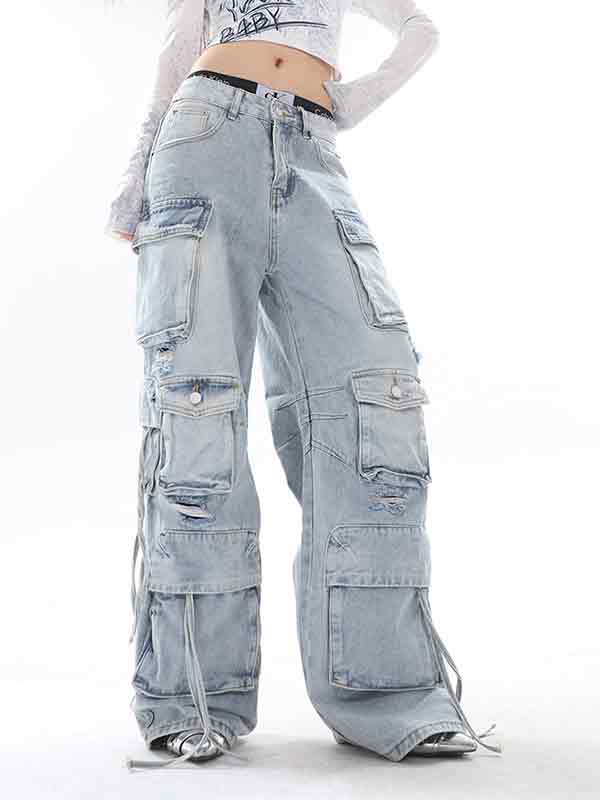 Jeans cargo con múltiples bolsillos y diseño de ropa de trabajo