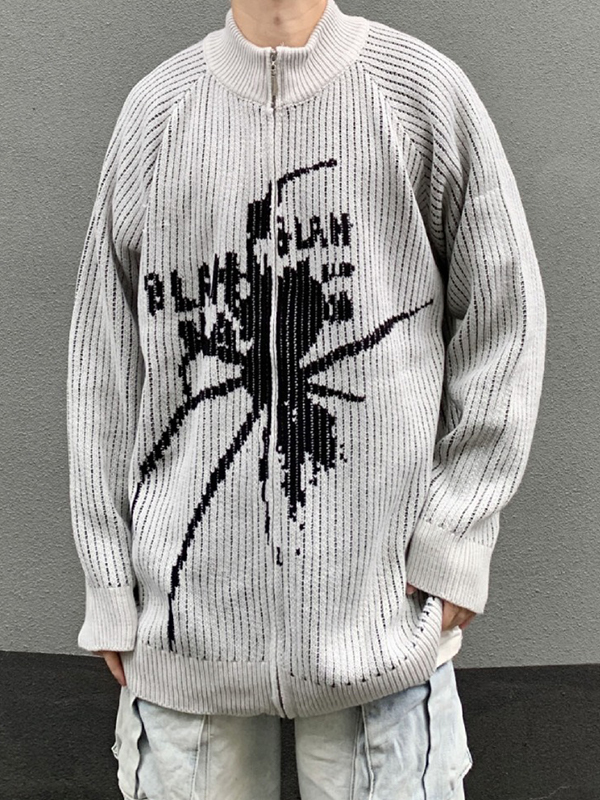 Prendas de vestir de punto con cremallera y cuello con estampado de araña para hombre