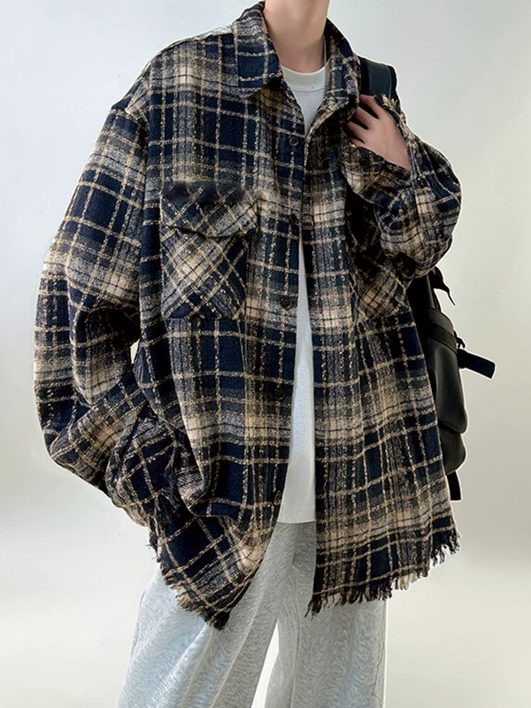 Chaqueta vintage con detalle de borlas a cuadros para hombre