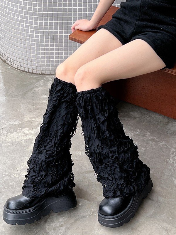 Calentador de piernas Y2K desgastado de color liso