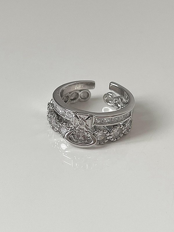 Anillo de puño con dije de planeta con diamantes de imitación de dos vías