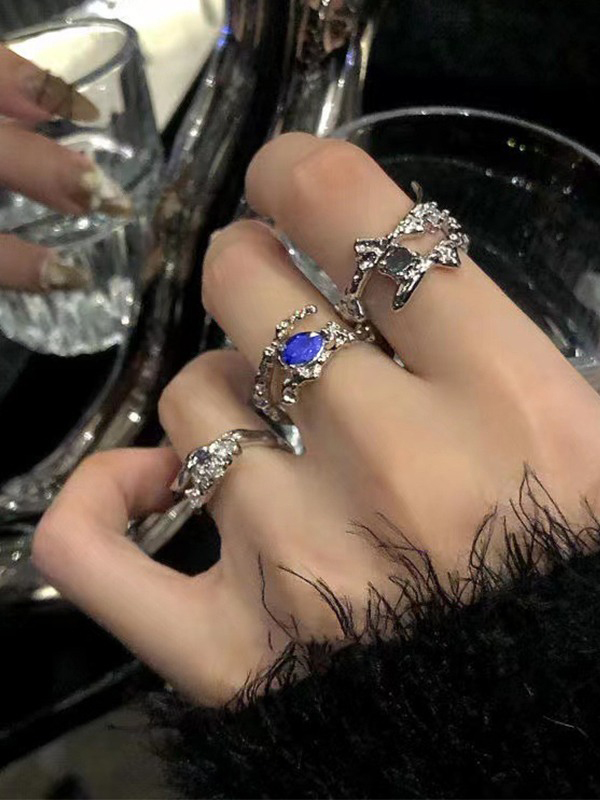 Juego de anillos de brazalete de diamantes de imitación de 3 piezas