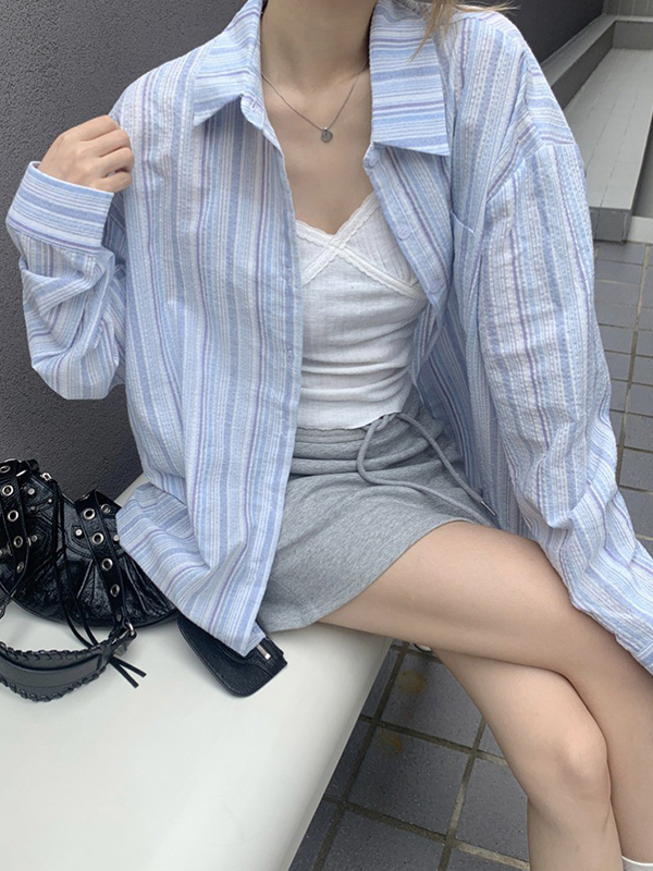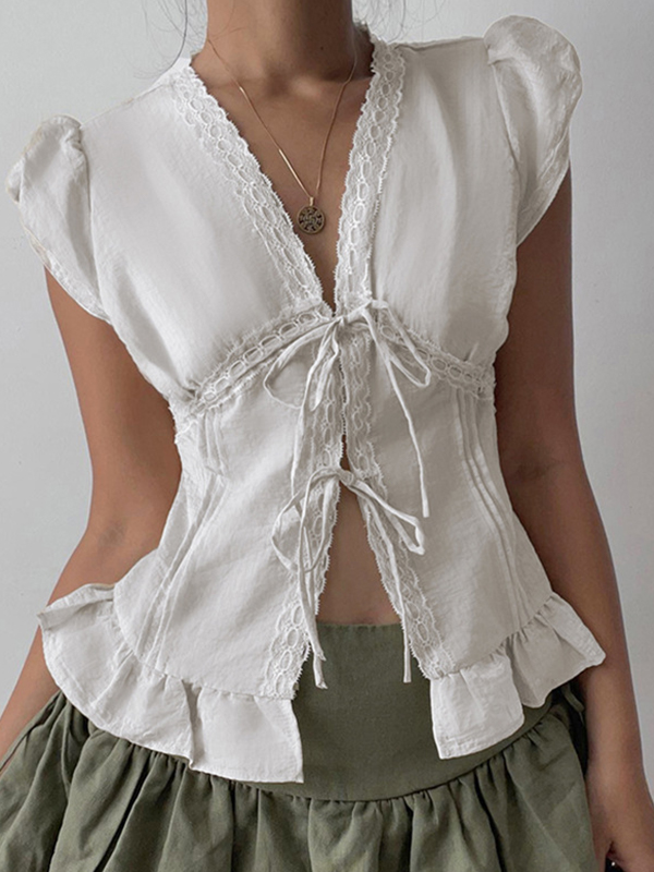 Camisa de gasa con volantes y mangas acampanadas y cuello redondo
