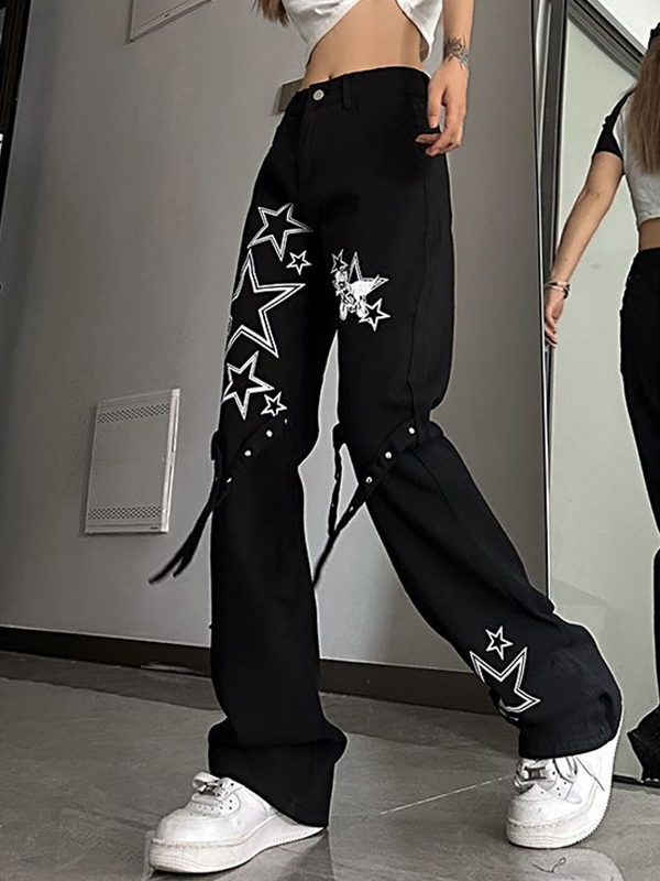 Vaqueros boyfriend acampanados con cintura alta y estampado de estrellas