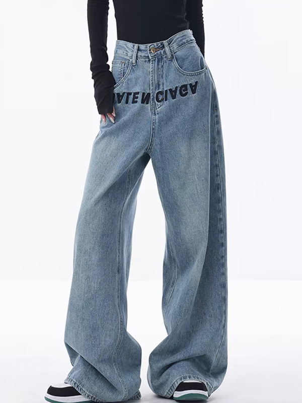 Vaqueros acampanados con abertura y cintura baja estilo retro americano