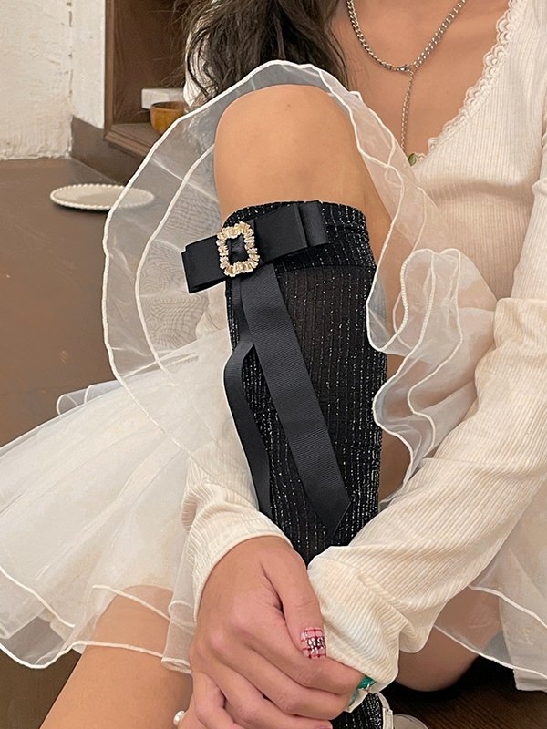 Calcetines hasta la rodilla con adorno de lazo de diamantes de imitación