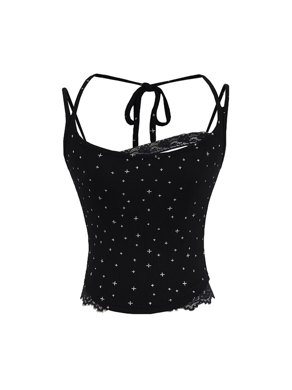 Top de tirantes finos con encaje estampado