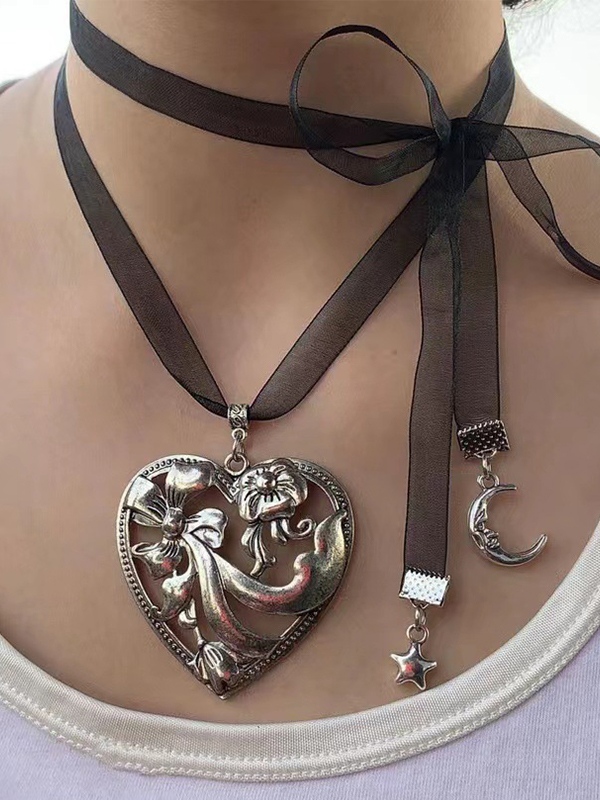 Collar con colgante de corazón grande con recorte exagerado