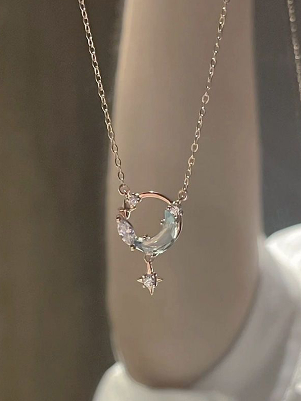 Collar con abalorio de luna y estrella calada plateada