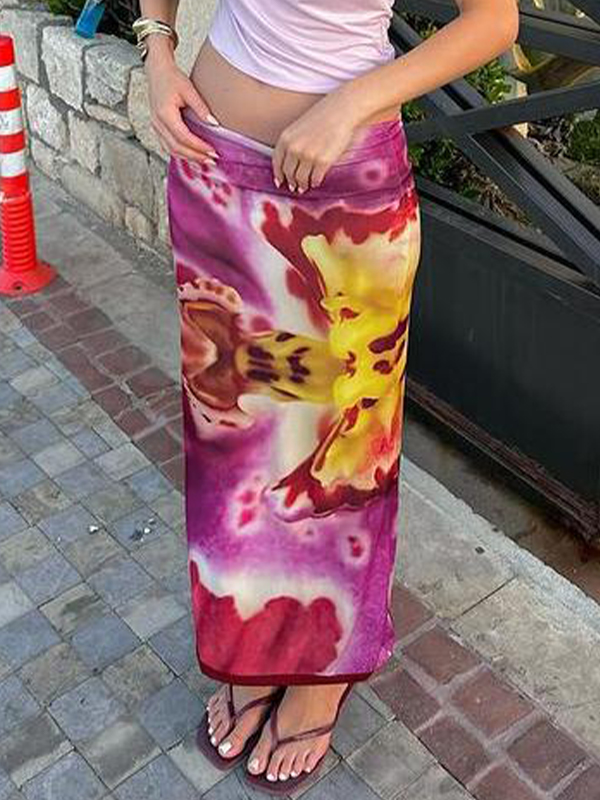 Minifalda adelgazante de color liso con capullos de flores