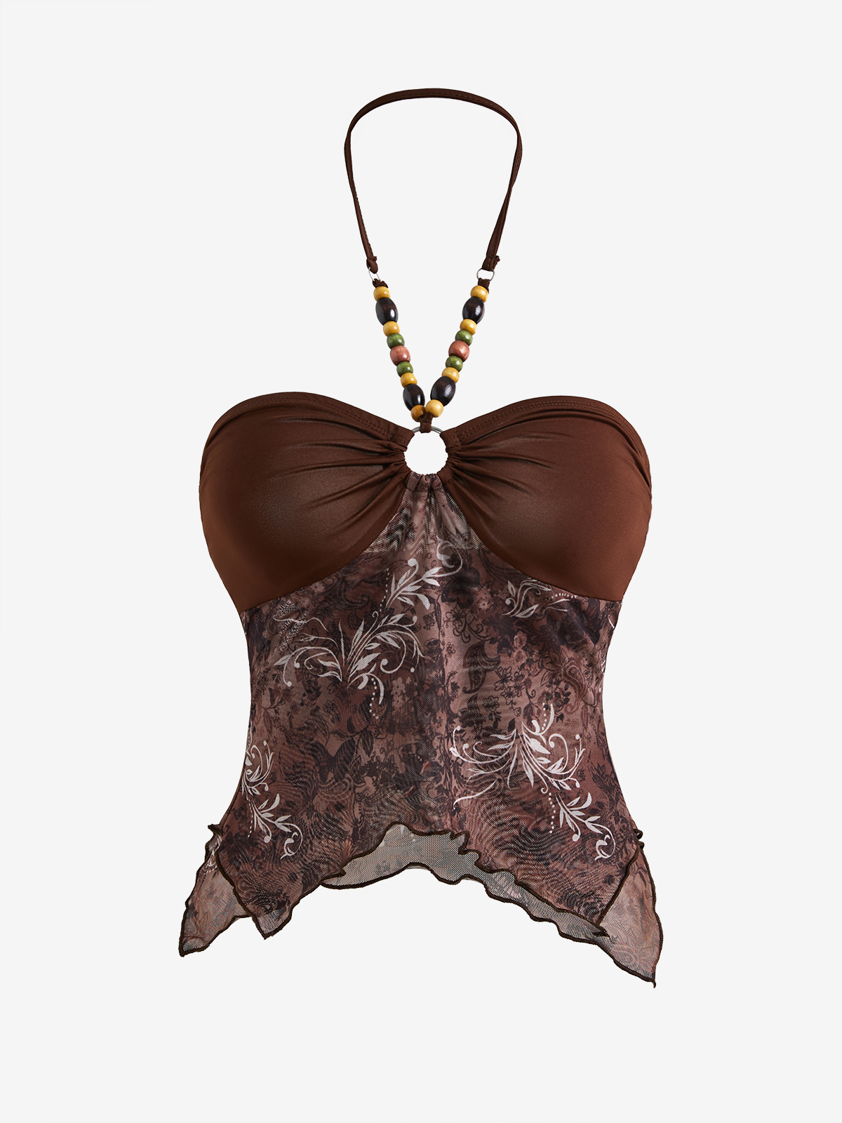 Chaleco halter con cordones y cuello colgante en colores contrastantes