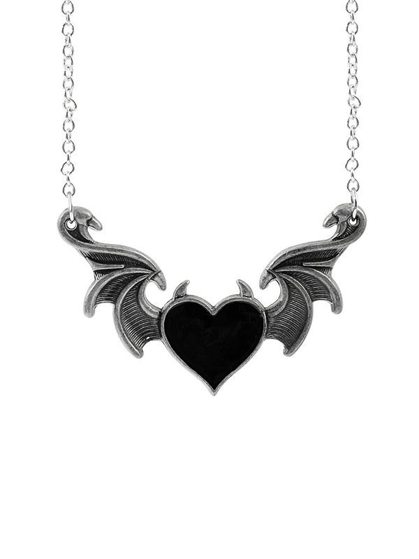 Collar con colgante de corazón de ala de diablo