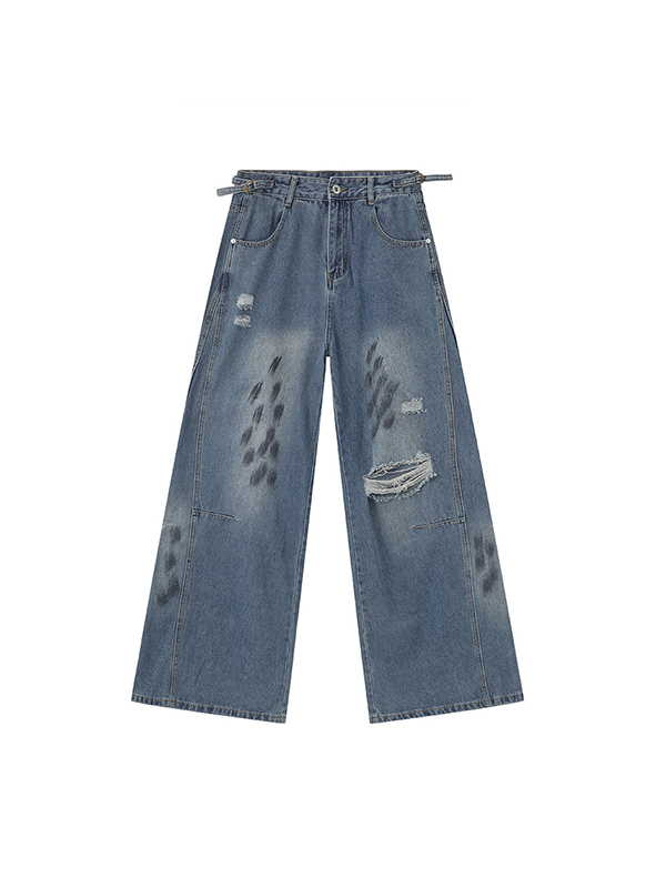 Vaqueros sueltos con estampado de salpicaduras para hombre