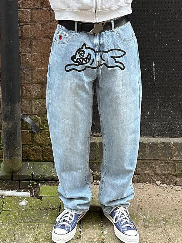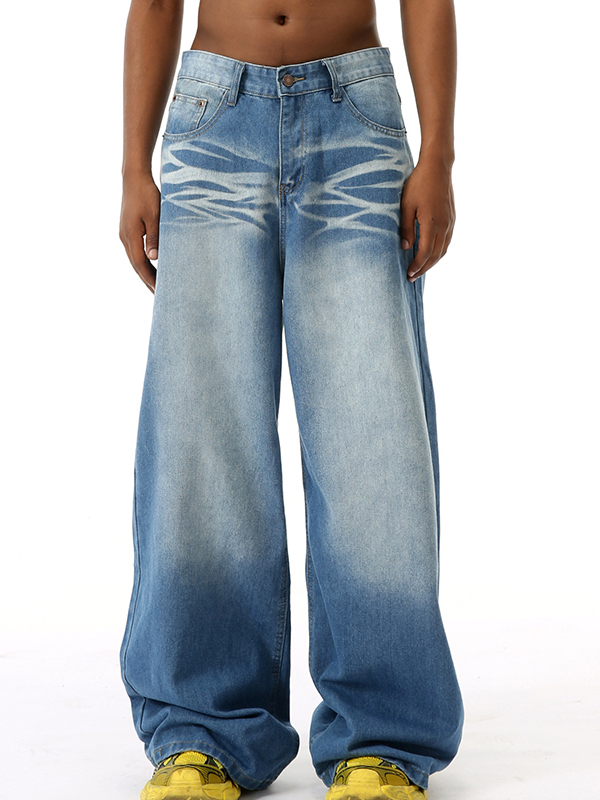 Vaqueros holgados de pierna recta con lavado vintage para hombre