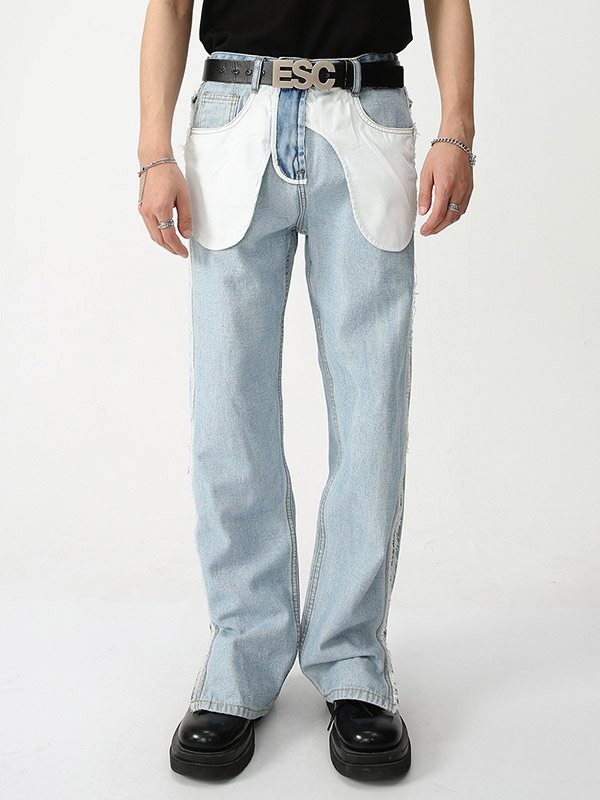 Jeans de hombre con cremallera y patchwork de pierna recta