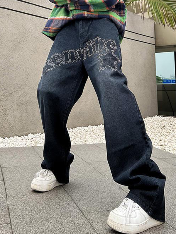 Jeans de pierna recta con adornos metálicos para hombre