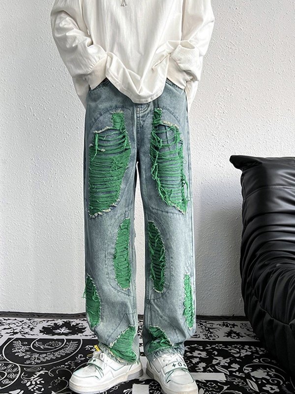 Vaqueros holgados con empalme desgastados vintage para hombre