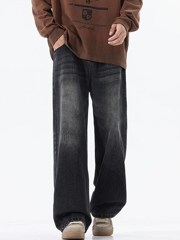 Vaqueros rectos y holgados con bigotes de gato estilo retro americano