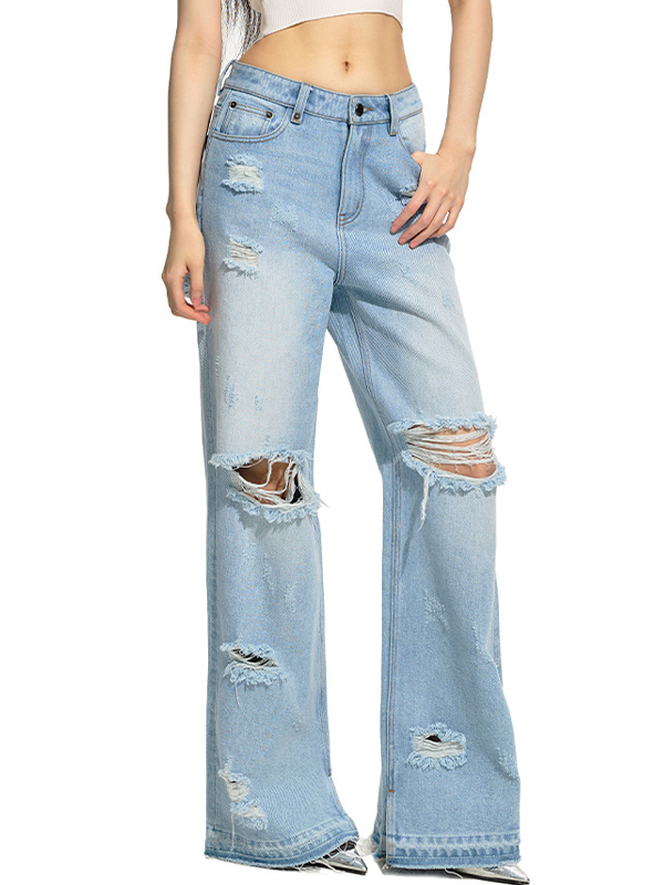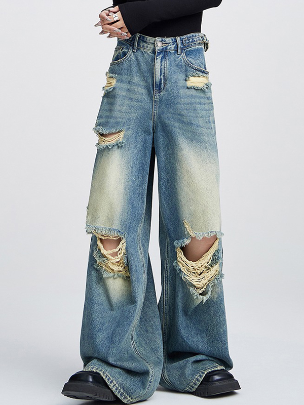 Vaqueros rectos y holgados con bigotes de gato estilo retro americano