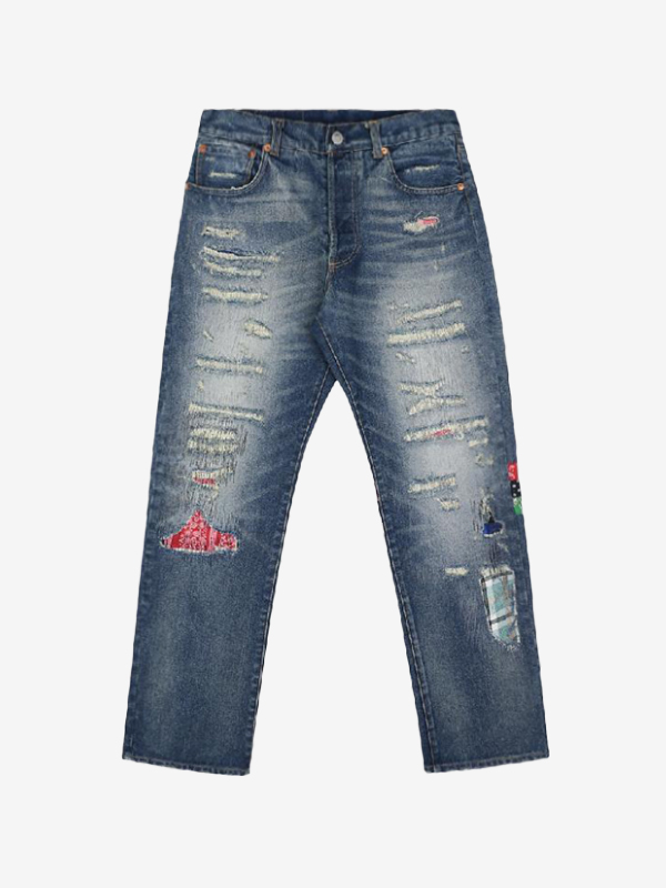 Vaqueros rectos rasgados con diseño raglán Destructive Sense