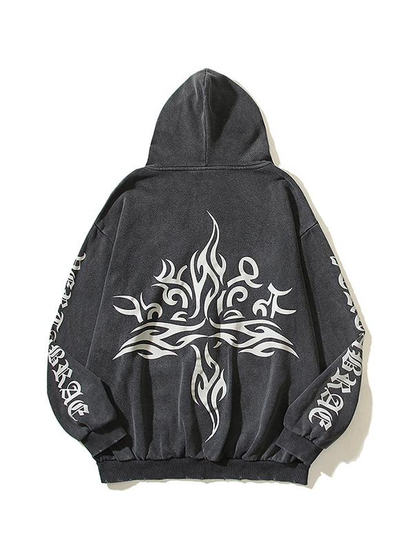Sudadera con capucha de manga larga extragrande con estampado oscuro para hombre