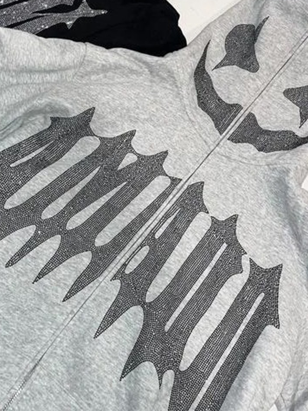 Sudadera extragrande con capucha y cremallera con cordón y estampado de demonio para hombre
