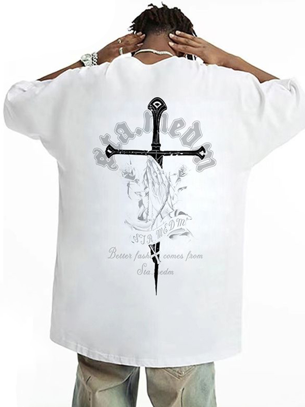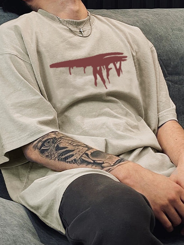 Camiseta extragrande de manga corta con estampado callejero para hombre
