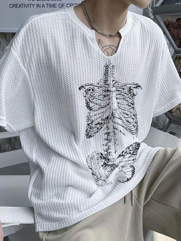 Camiseta de manga corta con cuello y estampado de calavera para hombre