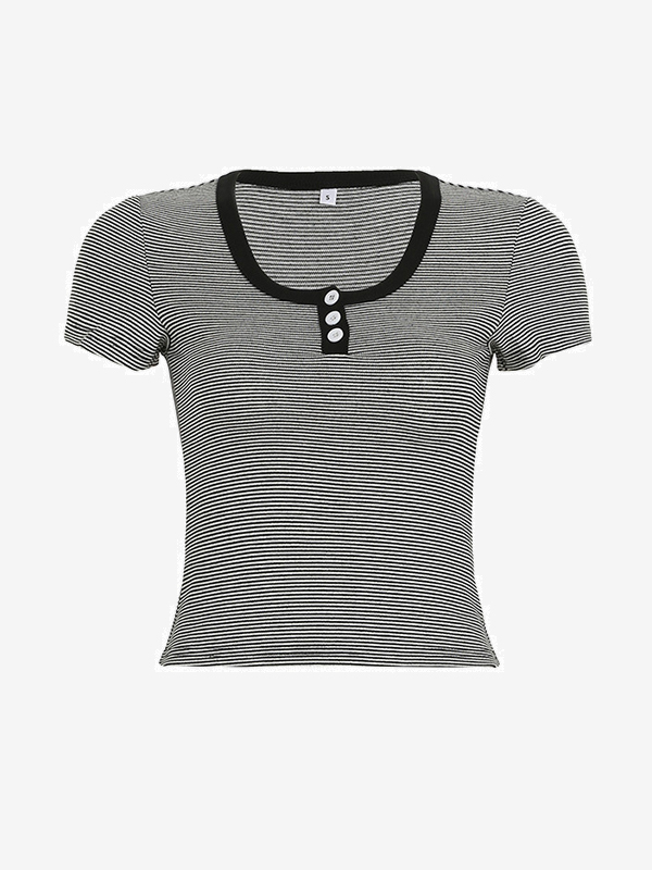 Camiseta de manga corta con bordado de rayas en contraste para hombre