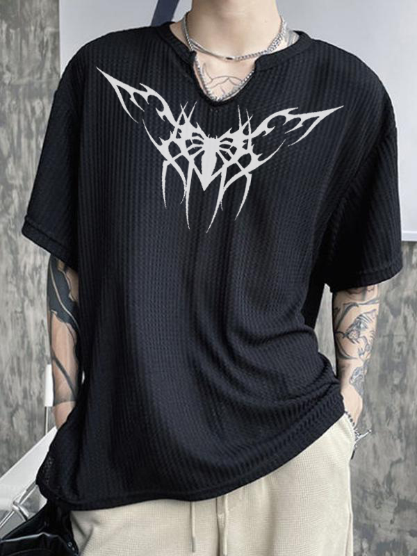 Camiseta de manga corta con estampado de letra de araña para hombre