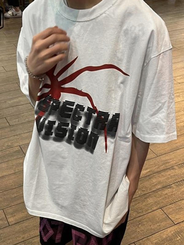 Camiseta de manga corta con estampado de letra de araña para hombre