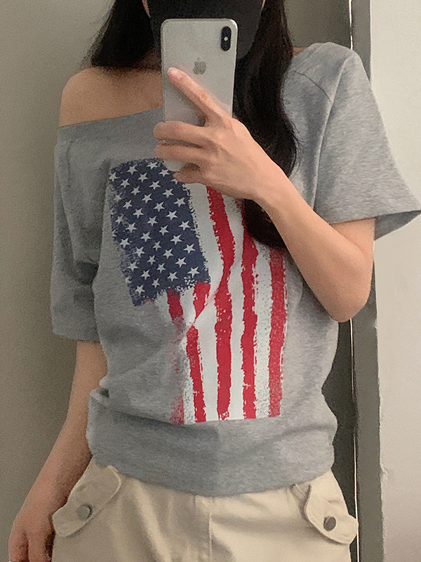 Camiseta de manga corta con estampado de bandera estadounidense