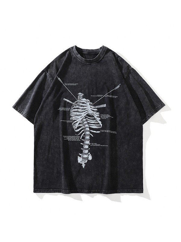 Camiseta de manga corta con esqueleto vintage lavado para hombre