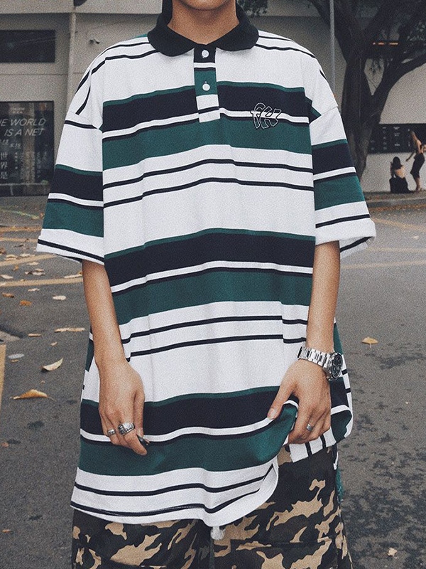 Camiseta de manga corta con bordado de rayas en contraste para hombre