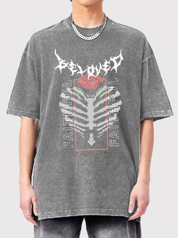 Camiseta extragrande de manga corta con estampado de calavera para hombre
