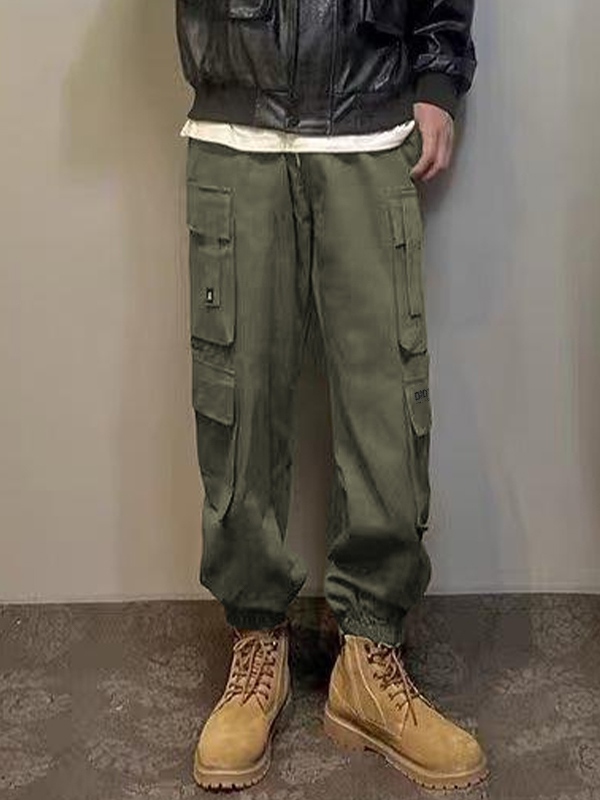 Pantalones cargo con cordón y cintura elástica con múltiples bolsillos para hombre