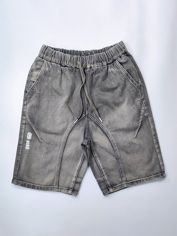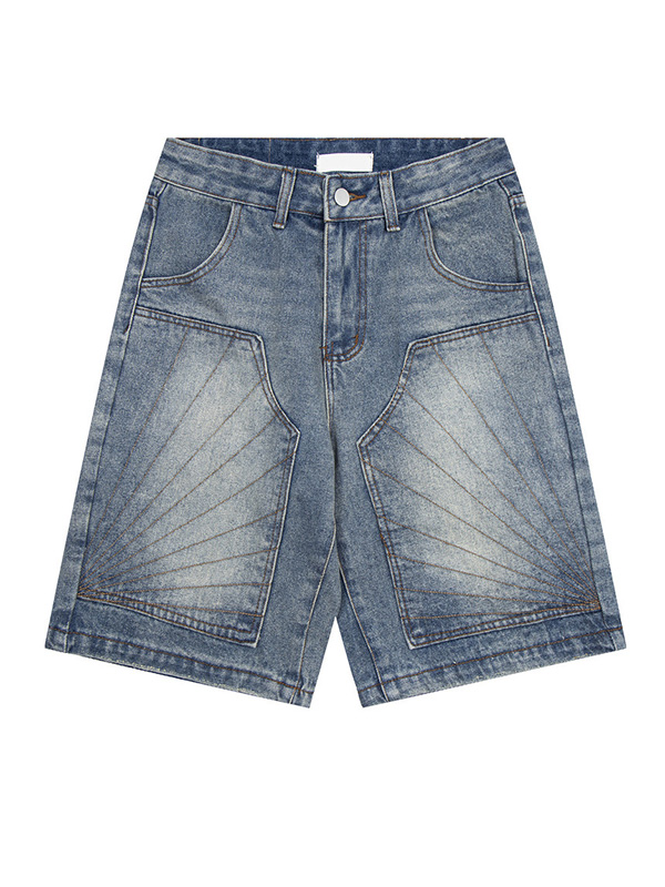 Pantalones cortos sueltos bordados desgastados lavados para hombre