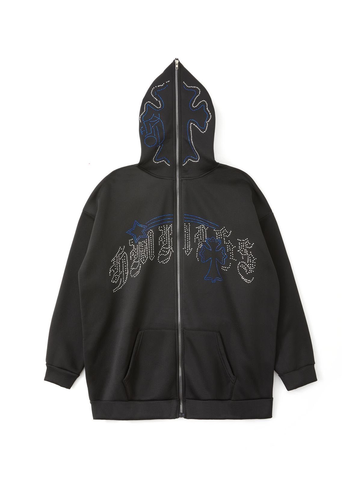 Sudadera con capucha y cremallera cruzada con diamantes de imitación punk para hombre