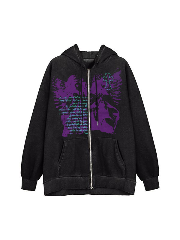 Sudadera con capucha extragrande con cremallera y estampado gráfico cruzado vintage