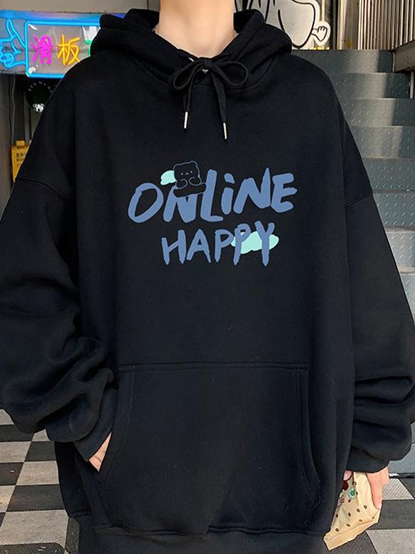 Sudadera con capucha extragrande con bolsillo de canguro y estampado de letras para hombre