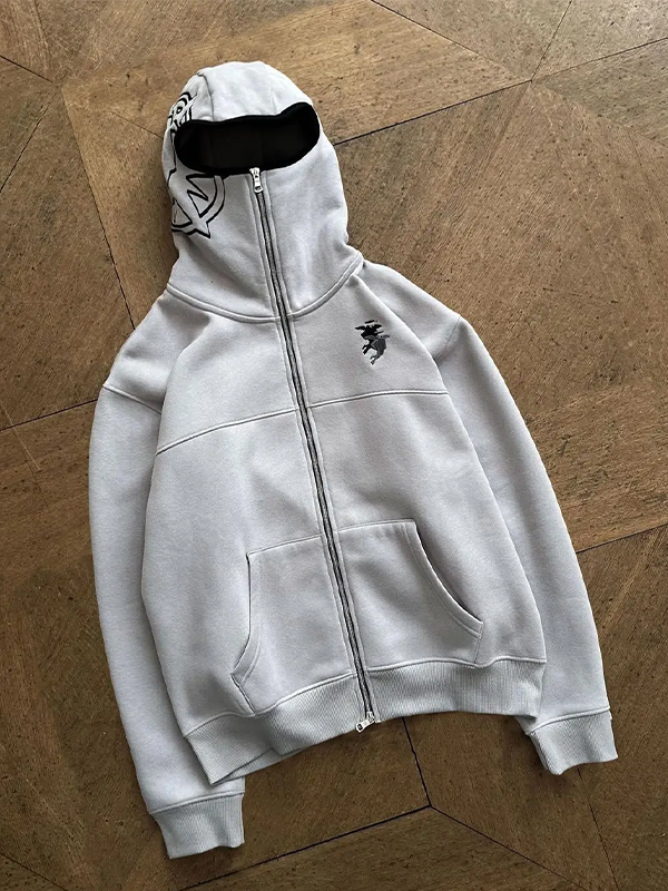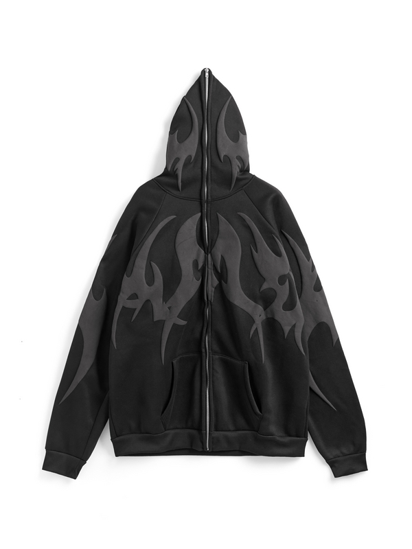 Sudadera con capucha extragrande con cremallera completa y estampado gráfico callejero para hombre