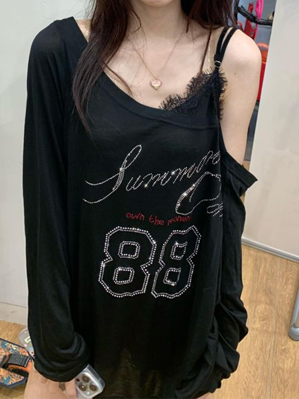 Camiseta de manga larga de gran tamaño con estampado de letras