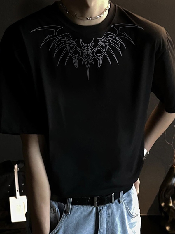 Camiseta extragrande de manga corta con estampado de alas para hombre